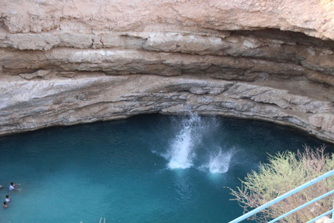 We then drove to a date orchard to have a picnic lunch. It was a nice experience to have food in the shades of the date palms and clear water flowing alongside for irrigation, on a very hot and sunny afternoon. Post lunch, we drove to the Bimmah Sinkhole