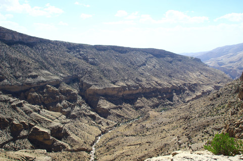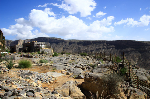 The next day, we drove to Jebal Akhdar, part of the Hajar Mountains of Oman. At the base of the mountain, the officials check for 4WD vehicles as the drive is steep. On our way we stopped at the famous Nizwa canyon. The deep canyon reminds of the Colorado in the US. It had deep gorges and was very rocky and steep. We enjoyed the canyon views and drove to Hotel Alila for lunch. We could see a lot of vegetation, pomegranate orchards, date farms on the way to the top.