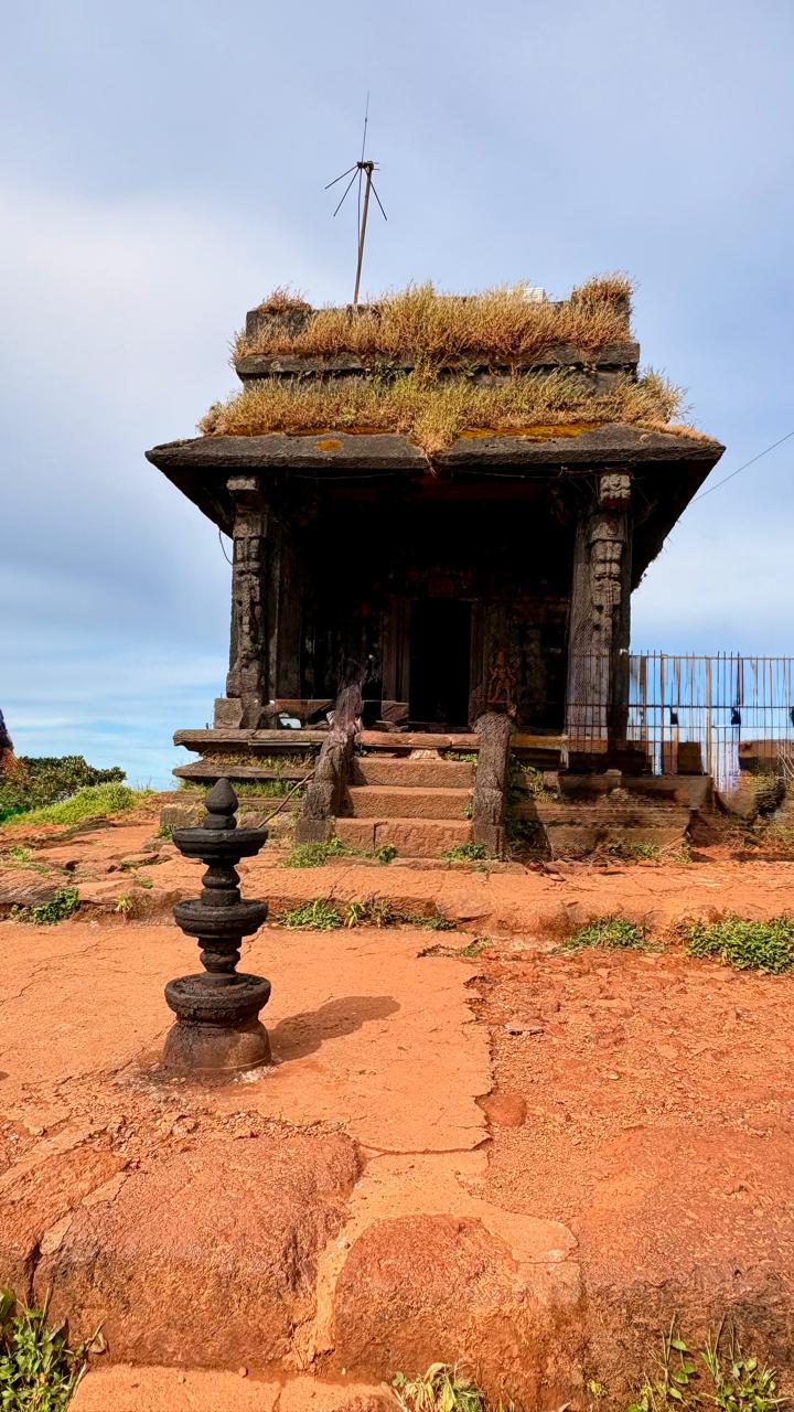 The jeep ride took us about an hour and half, with off road drives on hilly terrains to reach the base from where we have to trek uphill to reach the small ancient temple dedicated to Adi Shankaracharyar. Sarvajna Peetha is the small ancient temple, and this temple is supposed to be at the same location where Adi Shankaracharyar meditated to attain enlightenment. Kodachadri is deeply linked to Goddess Mookambika; it is believed that the Goddess performed penance here.