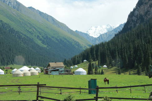 As we drove to the beautiful Supara Resort nestled in the scenic valley of Chunkurchak, we saw stunning views of Tian Shan, several herds of sheep and horse with herdsmen and shepherd's dog on the watch. We were viewing a trailer of what's waiting for us in this extra ordinary country in the days to come.