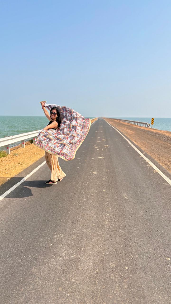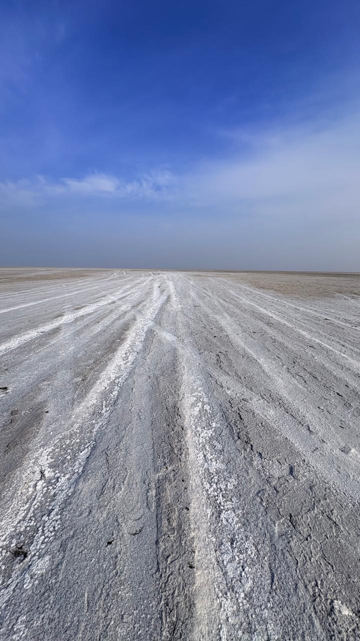 Next, was one of the top highlight of the trip, a drive on the 'Road to Heaven'. This road connects the mainland of Kutch to Dholavira village, which is cut off from the mainland with salt water lakes around it. This island is so significant for its Harappan era excavations and is a UNESCO heritage site. The road is around 31 km long, straight and beautiful with salt water lakes on either side. It feels endless and indeed as if you are on a road to heaven.