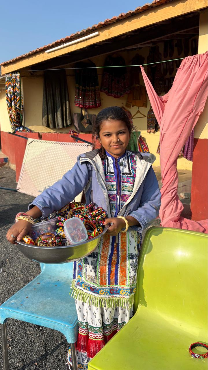 The beautiful vendor girls selling her hand made products in Dhordo village